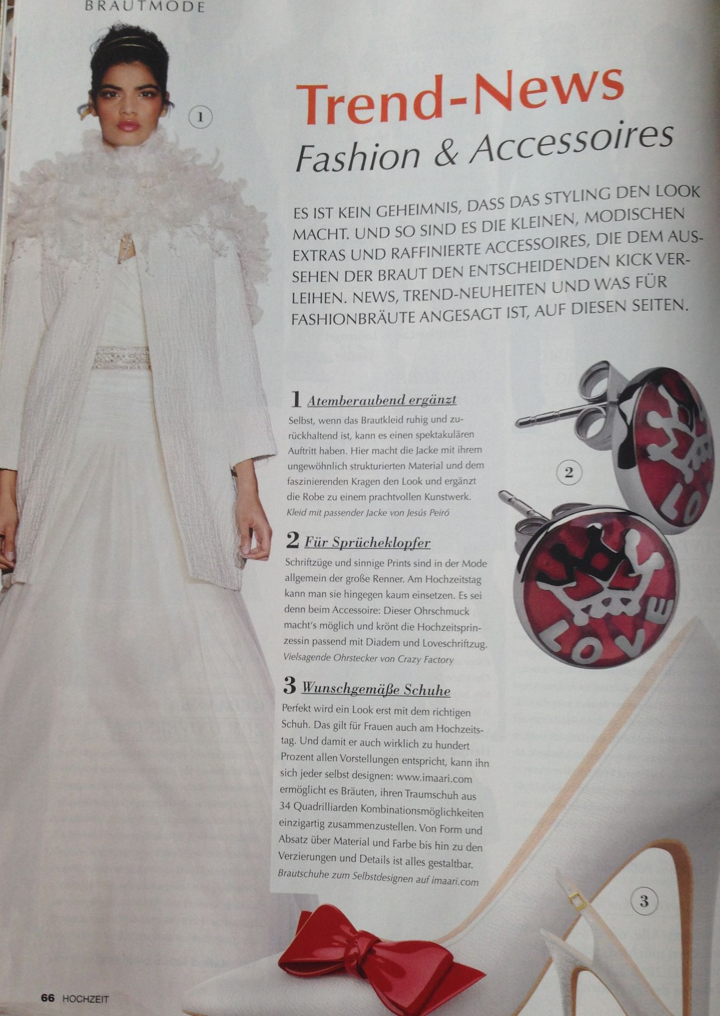 We are present in all the big magazines as InStyle, Glamour, Jolie, Girl, Gala, Bunte, Inside, InTouch, Bravo, Grazia, Mädchen, Hey, Yeah, Cosmopolitan, Wedding, trade publications, trade journals, special interest magazines and many many more.